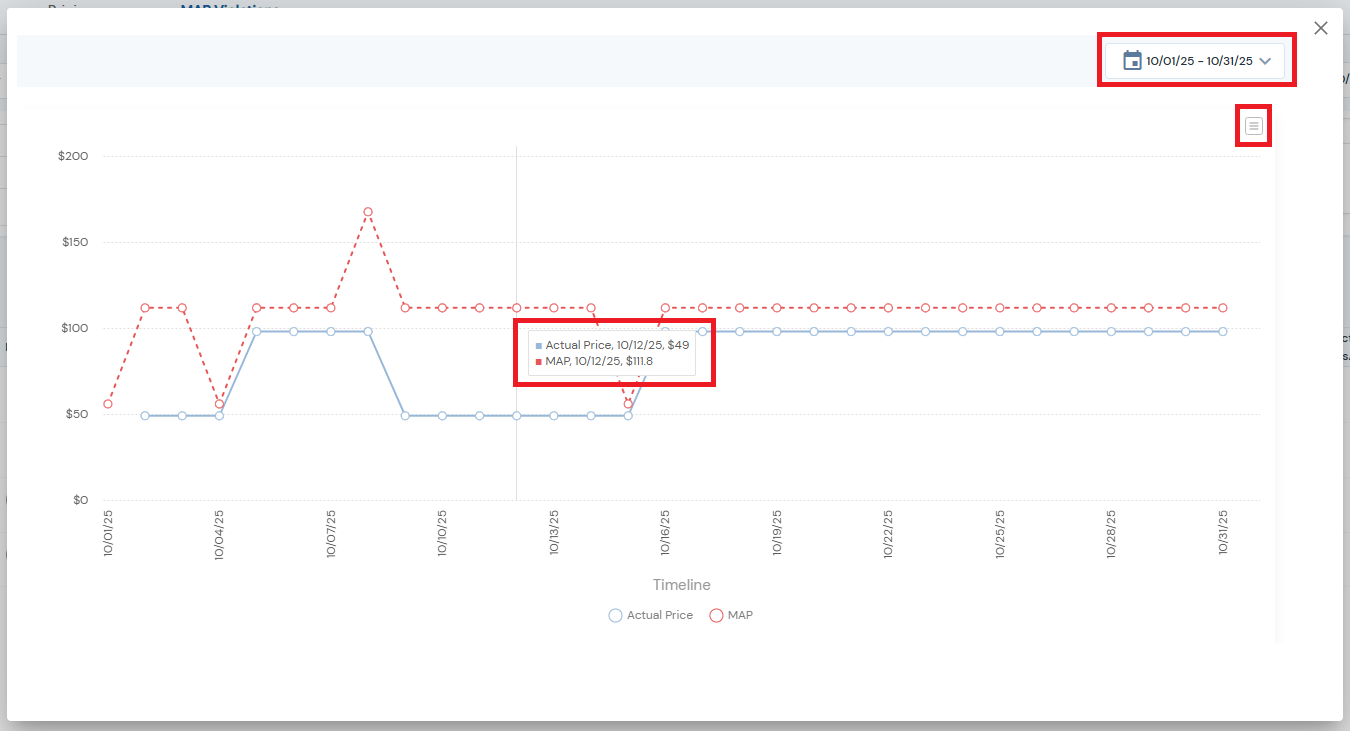 - Click the Filter icon to set seller status (Authorized, Unauthorized, All), Platform, Brand, Region, and product identifiers.