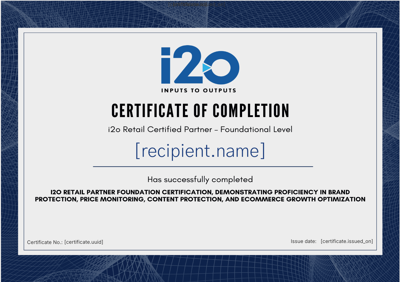 - Receive Your Certification & Digital Badge: Upon successful completion, you’ll earn an official i2o Certified Partner Badge & Certificate, which can be shared on LinkedIn and added to your website or client proposals.